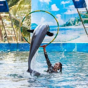 A great experience of the show is the ‘swim with dolphins,’ a true and nestling close contact with nature, lovely, super warm and friendly. By all means the dolphin show is amazing to watch, because if you want fun, looking for excitement and challenge yourself this is the right moment for you.